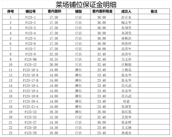 出租標(biāo)的面積及成交單位: